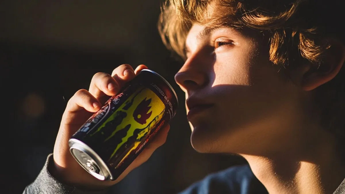 Хлопчик п'є енергетичний напій. Фото: freepick