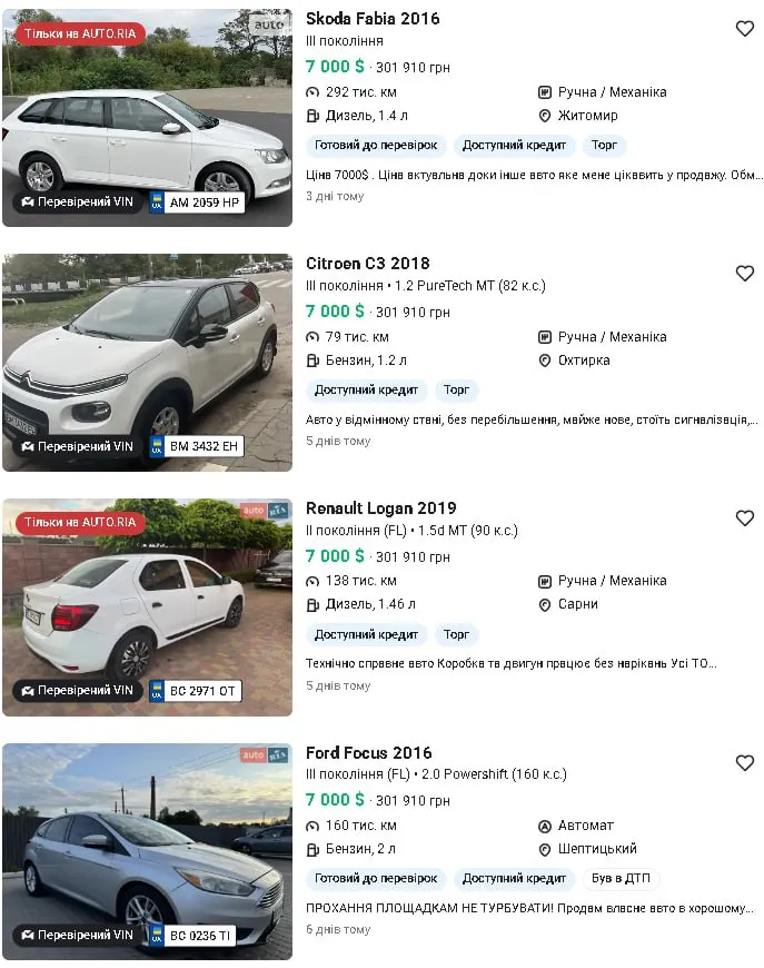 До речі, цікавий лот у Переяславі – червона Ford Fiesta 2018 року за 8000 у.о.. Пробіг всього 84 тисячі км. Так, був удар, але рік випуску підкуповує. Це та сама грань, де ви обираєте між «старшим, але цілим» та «молодшим, але з історією». Вибір, який кожен робить сам, зважаючи на власну сміливість.