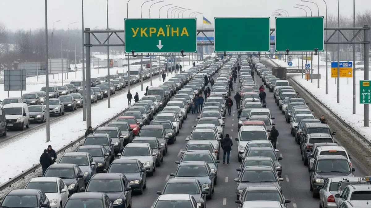 Автомобілі на кордоні Украни. Фото: BLIK.ua, згенероване засобами ШІ