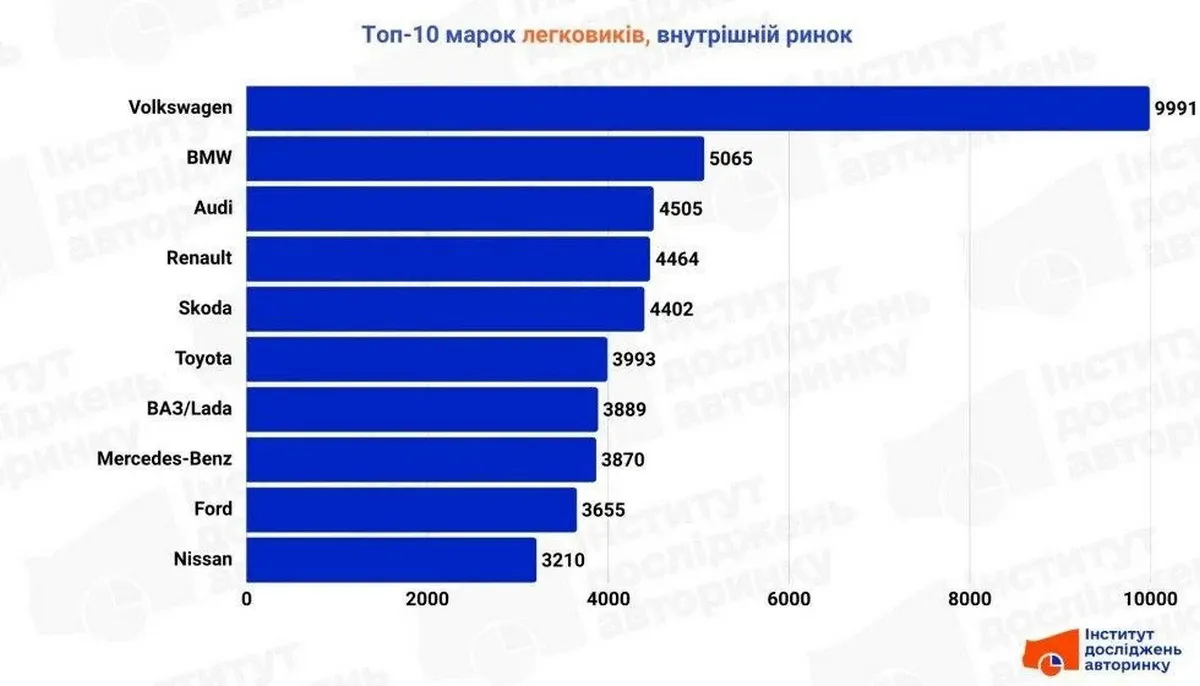 Volkswagen поступово наближається до позначки 10 тисяч угод на місяць, залишаючись беззаперечним лідером. Другу та третю позиції зайняли BMW й Audi, що свідчить про стабільний попит навіть на преміальні марки. Водночас ринок залишається орієнтованим на практичність і перевірені роками моделі.