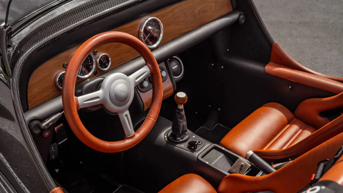 Салон спорткара оздоблений шкірою та деревом, а покупці можуть індивідуально обирати матеріали та кольори. Завдяки поєднанню класики та сучасних технологій модель стала унікальною пропозицією для колекціонерів.