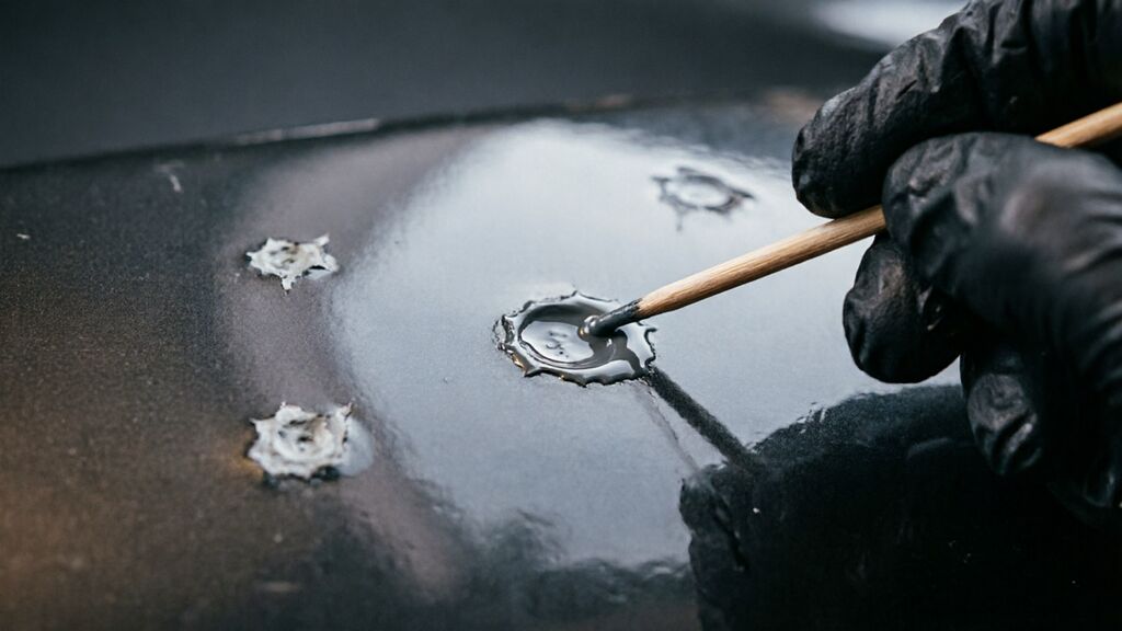 А тепер магія зубочистки. Вона дозволяє дозувати фарбу буквально по краплі, заповнюючи саме заглиблення, а не розмазуючи «пляму» по всьому капоту.