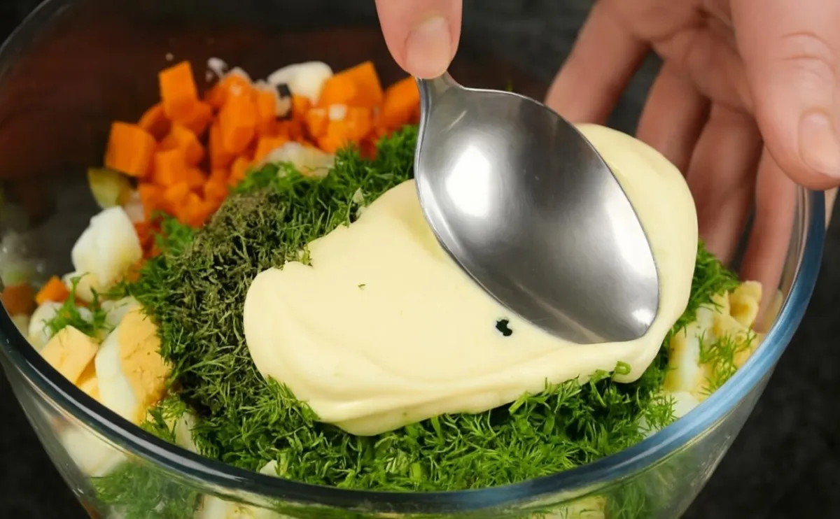 Майонез забезпечує щільну текстуру, завдяки якій салат тримає форму й не «пливе».