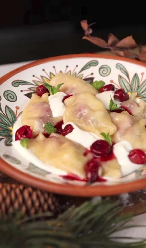 - Подавайте вареники з вишневим соусом і сметаною. За бажанням додайте м’яту.