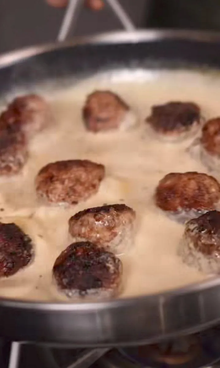 Мітболи обсмажують до рум’яної скоринки. Для соусу на пательню додають вершкове масло, борошно, перемішують, вливають м’ясний бульйон, вершки, додають гірчицю, соєвий соус і перець. Після цього мітболи повертають у соус і тушкують кілька хвилин.