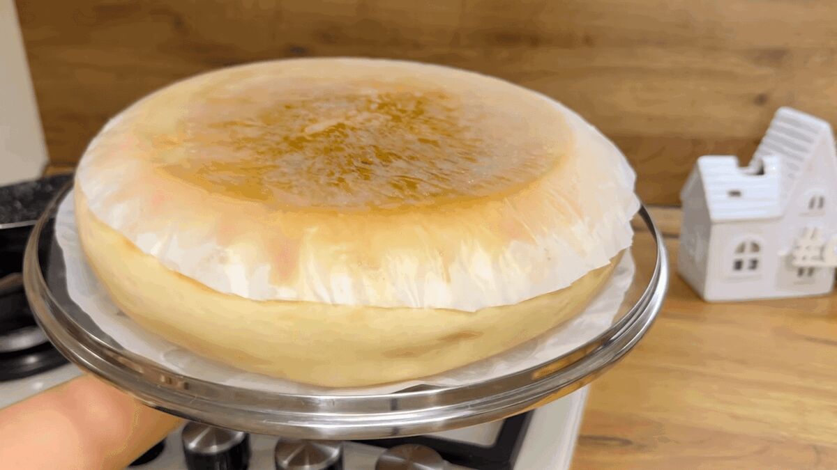 - Підготуйте сковороду й кришку, вистеливши їх змащеним пергаментом. Після підйому тісто обімніть, сформуйте знову й викладіть у сковороду, трохи приплюснувши. Дайте постояти ще 20 хвилин.