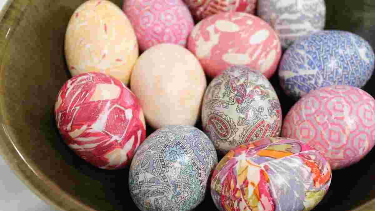 Як пофарбувати яйця за допомогою шовкової тканини?