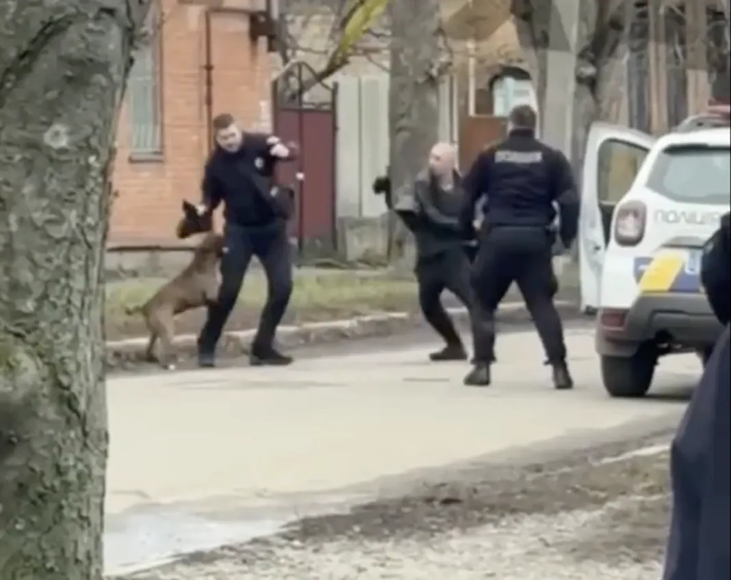 Пес кусає поліціянта. Фото: скріншот