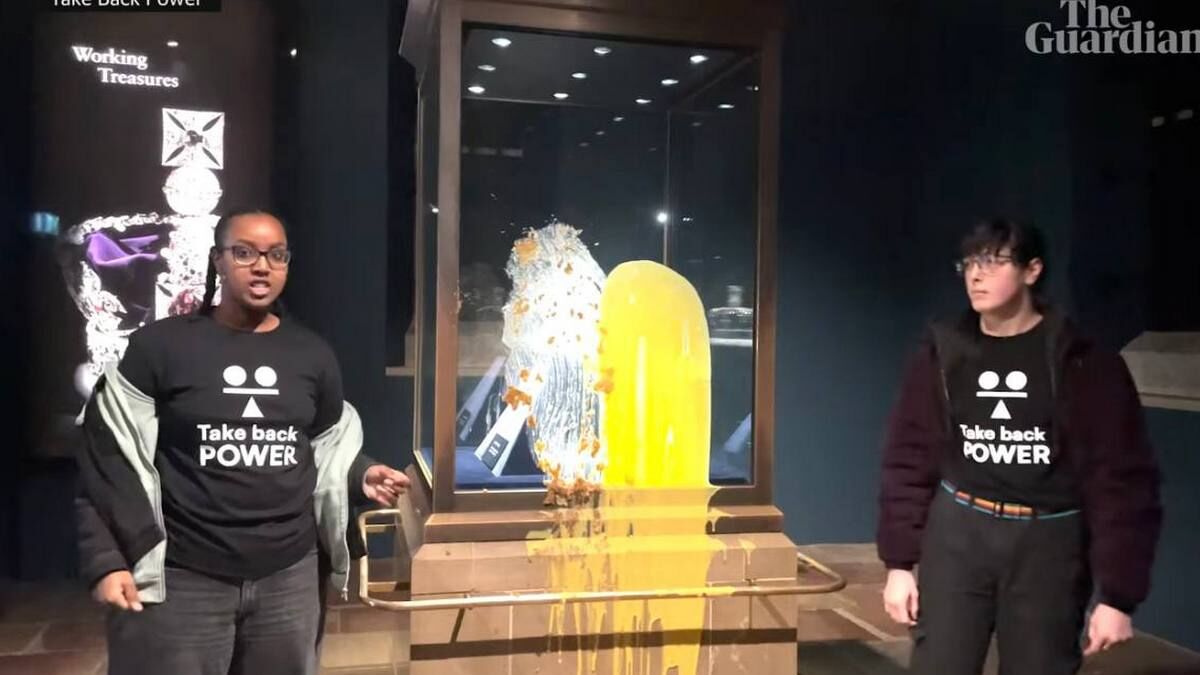 У Королівській скарбниці Лондона активісти руху Take Back Power закидали королівські коштовності яблучним пирогом на знак протесту проти соціальної нерівності.