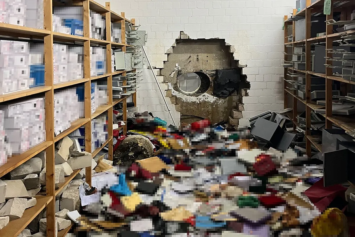 Пролом у стіні та зламане сховище банку в Гельзенкірхені. Фото: Polizei Nordrhein-Westfalen