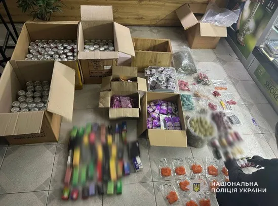 За місцем проживання та в автівках затриманих вилучили понад 800 желейок, понад 500 цукерок, шоколадки, близько 300 картриджів та інгаляторів, каністри з ополіскувачем для ротової порожнини, банки та інші ємності з психотропними речовинами, 115 банок з екстрактом канабісу, зіп-пакети з псилоцибіновими грибами, психотропні речовини МDMA, LSD та кетамін, засоби та інгредієнти для виготовлення «продукції», засоби для фасування та чорнові записи.