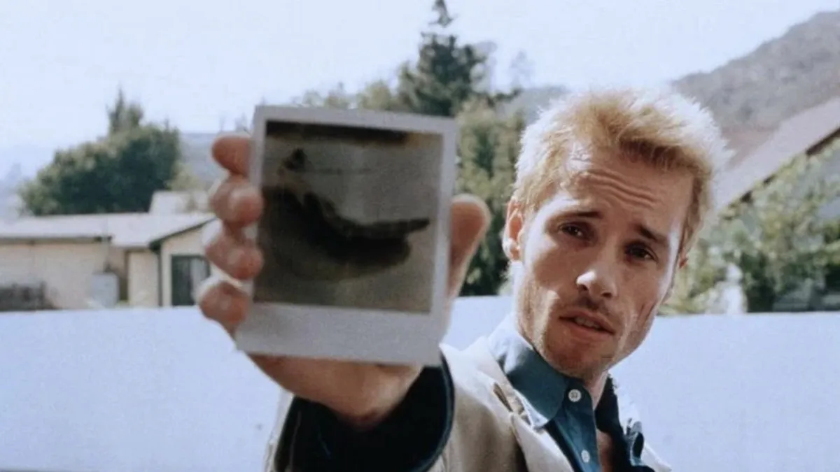 Чоловік з короткостроковою амнезією шукає вбивцю своєї дружини, використовуючи татуювання, фотографії та нотатки для фіксації інформації. Історія розповідається нелінійно, задом наперед, що змушує глядача переживати плутанину героя.