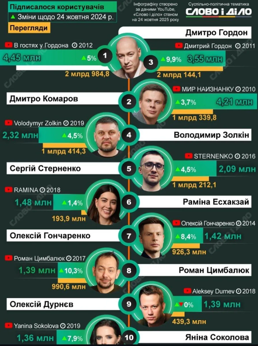 «Я знову в списку ТОП-10 найвпливовіших блогерів України. Вже четвертий рік поспіль входжу до першої десятки рейтингу найпопулярніших блогерів України-2025, які висвітлюють війну у своїх матеріалах. За рік я піднялася на одну позицію і зараз займаю шосте місце серед українських YouTube-блогерів із найбільшою кількістю підписників, які висвітлюють війну в Україні».