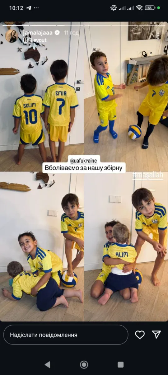 Співачка Джамала також долучилася до футбольного вечора: її трійко синів - Емір, Селім та Алім - приміряли іменні футболки та навіть тренувалися вдома, жонглюючи м’ячем.