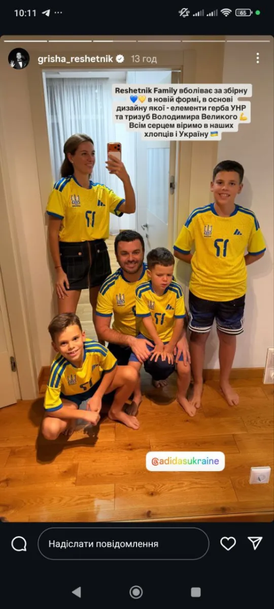 Родина Григорія Решетника теж готувалась до матчу у повному складі: дружина телеведучого та троє синів одягнули футболки з номером 17 - тим самим, під яким за збірну виступає Олександр Зінченко.