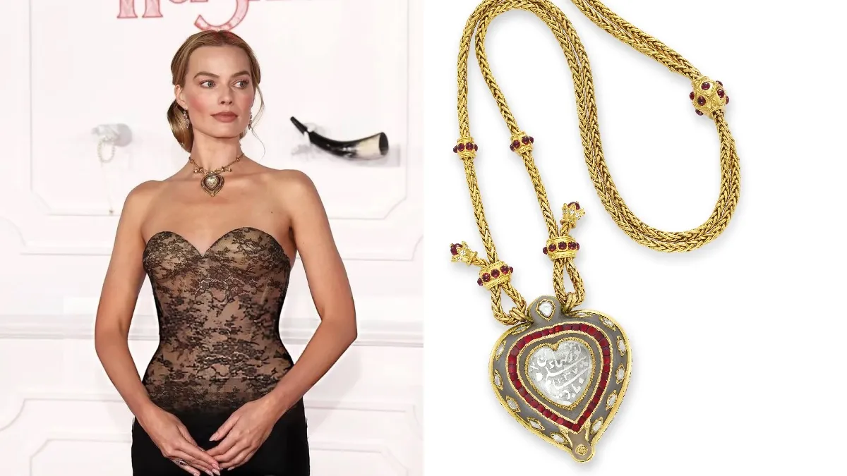 Акторка Марго Роббі постала в розкішній сукні від Schiaparelli, доповнивши її кольє Taj Mahal від Cartier. Цей аксесуар, який є частиною її образу, раніше був подарунком Річарда Бертона для Елізабет Тейлор на її 40-річчя. Прикраса коштує понад $8 мільйонів.