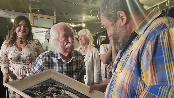 Іван Марчук зі своєю роботою. Фото: Суспільне