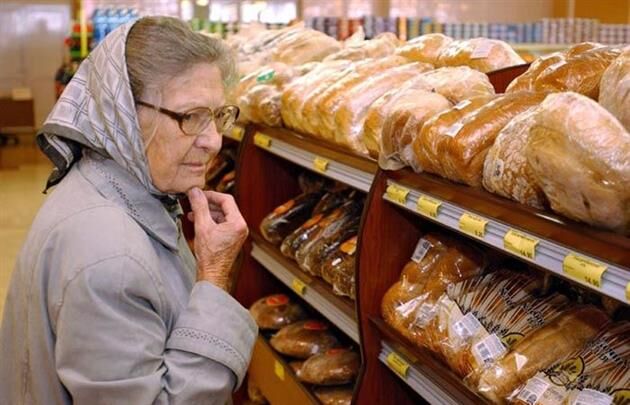 Бабуся обирає хліб в магазині. Фото: volynnews.com