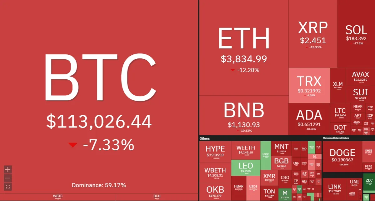 Не менш драматичною стала ситуація на крипторинку. Загальні втрати сягнули $10 млрд, а біткоїн просів на 14%. Альткоїни втратили від 50% до 60% вартості, що стало рекордним обвалом за всю історію цифрових активів.