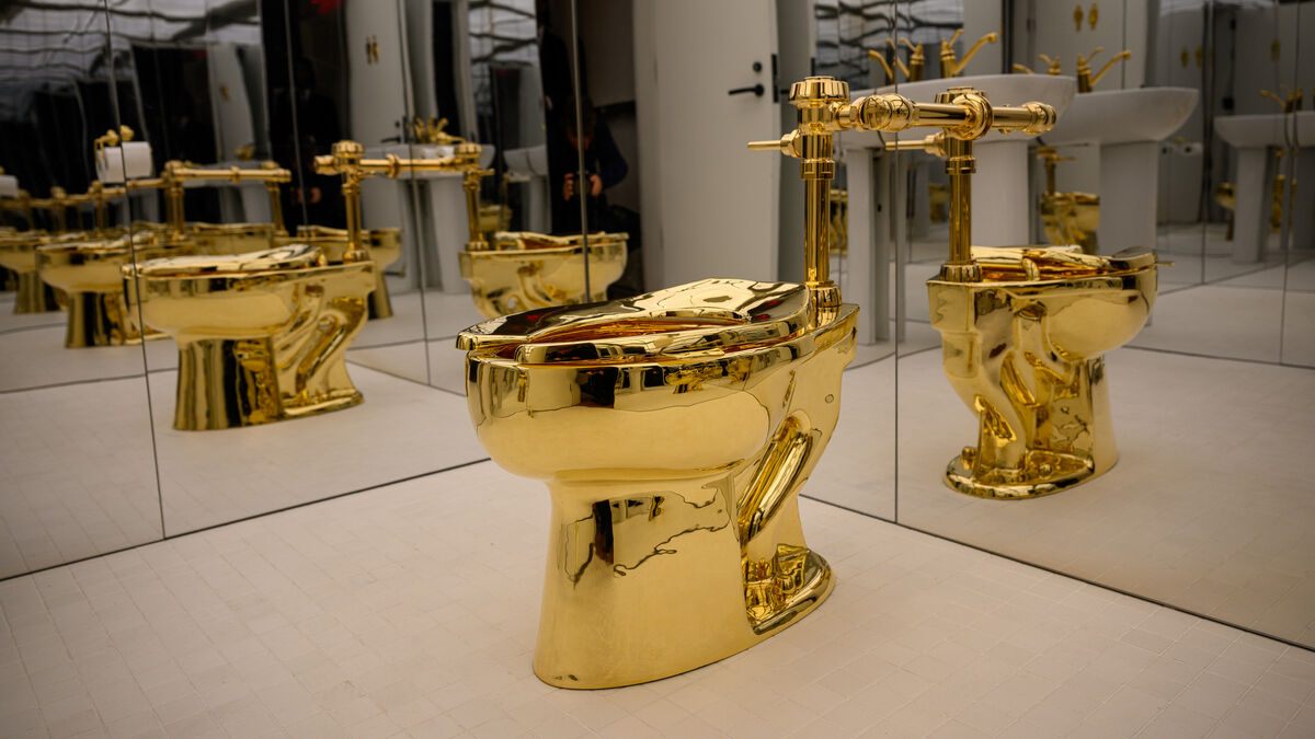 An 18-karat gold toilet sold for $12 million at auction in New York. The art work 'America' gained notoriety as a fully functional piece exhibited at the Guggenheim Museum pic.twitter.com/WkWddCB2bH