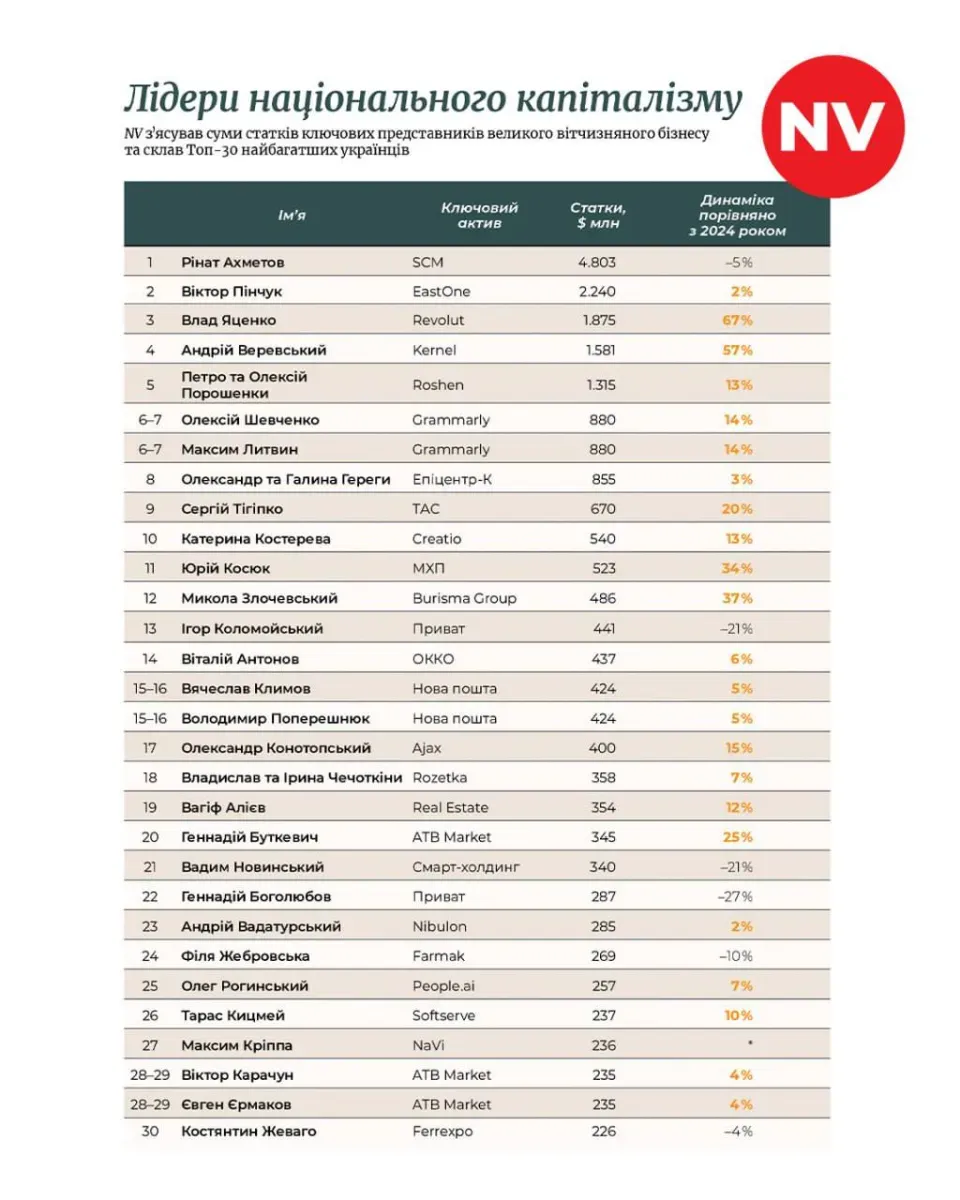 ТОП-30 найбагатших українців за версією NV. Фото: NV