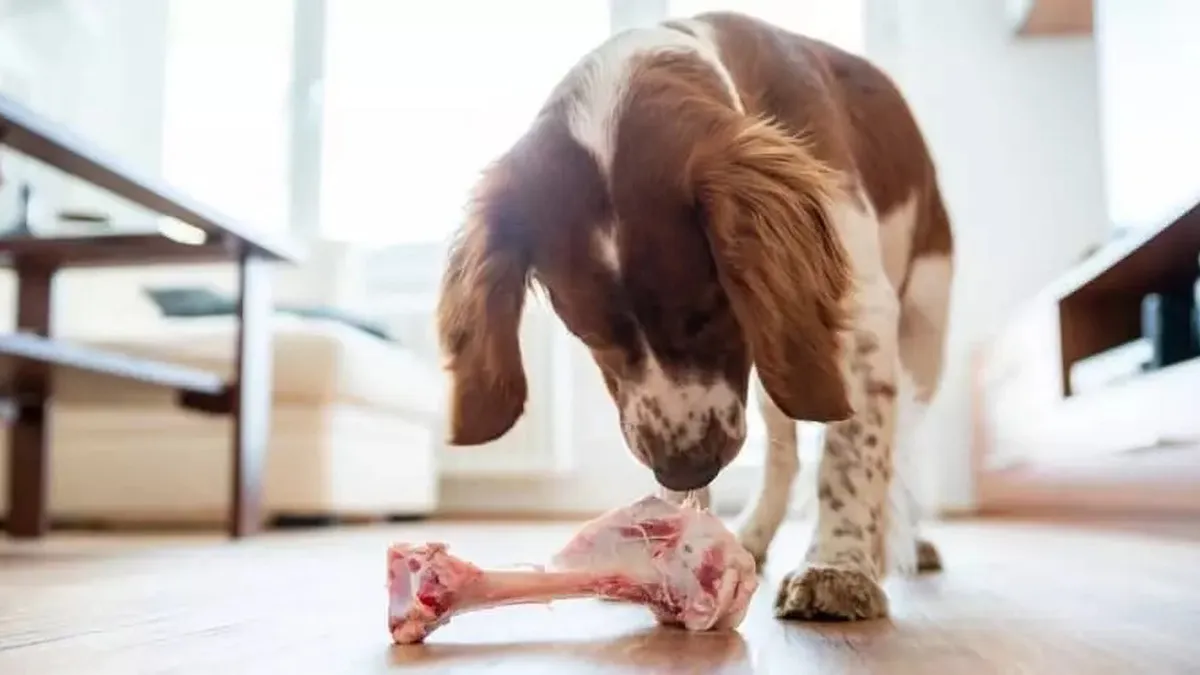 Собака бере кістку з підлоги. Фото: zoocomplex.com.ua