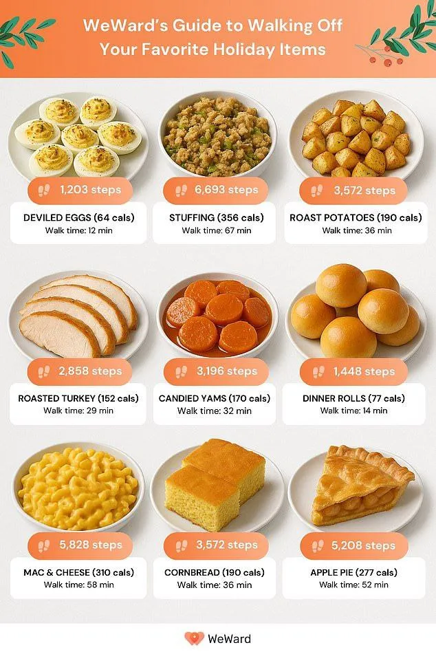 Важливо! Дослідники проаналізували калорійність порцій святкових страв і напоїв, а потім перевели ці показники у кількість кроків і час ходьби, необхідний для дорослої людини, що рухається у помірному темпі.