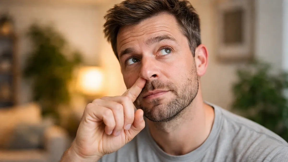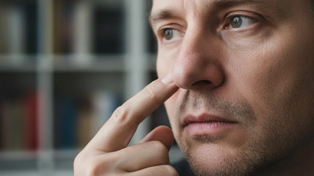 Чоловік колупається у носі. Фото: BLIK.ua, згенероване засобами ШІ