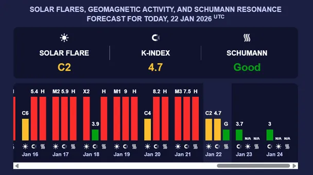 Сьогодні, 22 січня, інтенсивність магнітних бурь дещо знизилася, однак усе ще залишається доволі потужною. Наразі геомагнітна активність опустилася до К-індексу 4,7. Про це повідомляють Meteoagent та Британська геологічна служба.