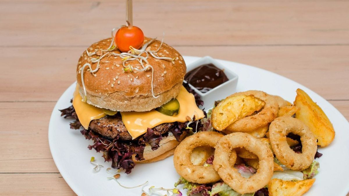 Бургер, цибулеві кільця та смажена картопля Фото: Unsplash