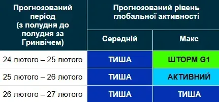 Прогноз магнітних бурь на 27 лютого