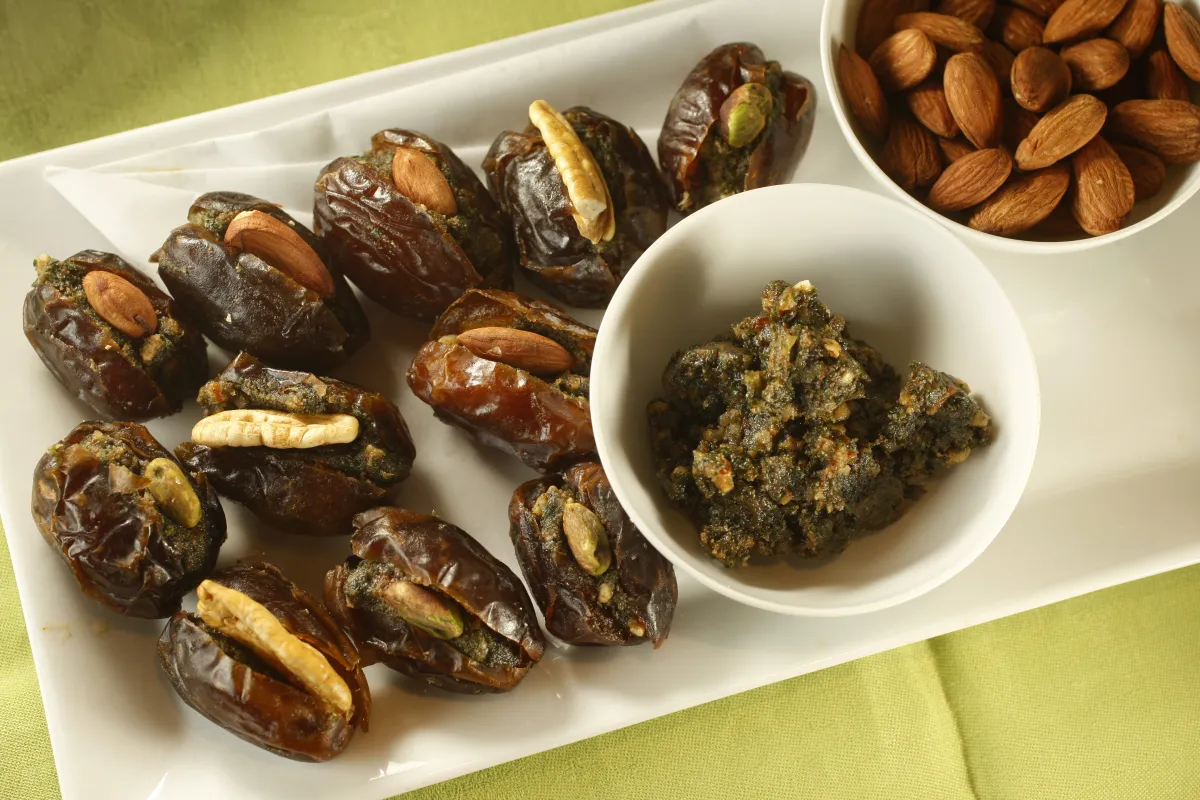 Природна солодкість фініків поєднується з магнієм та жирами горіхової пасти. Можна додати трохи чорного шоколаду.