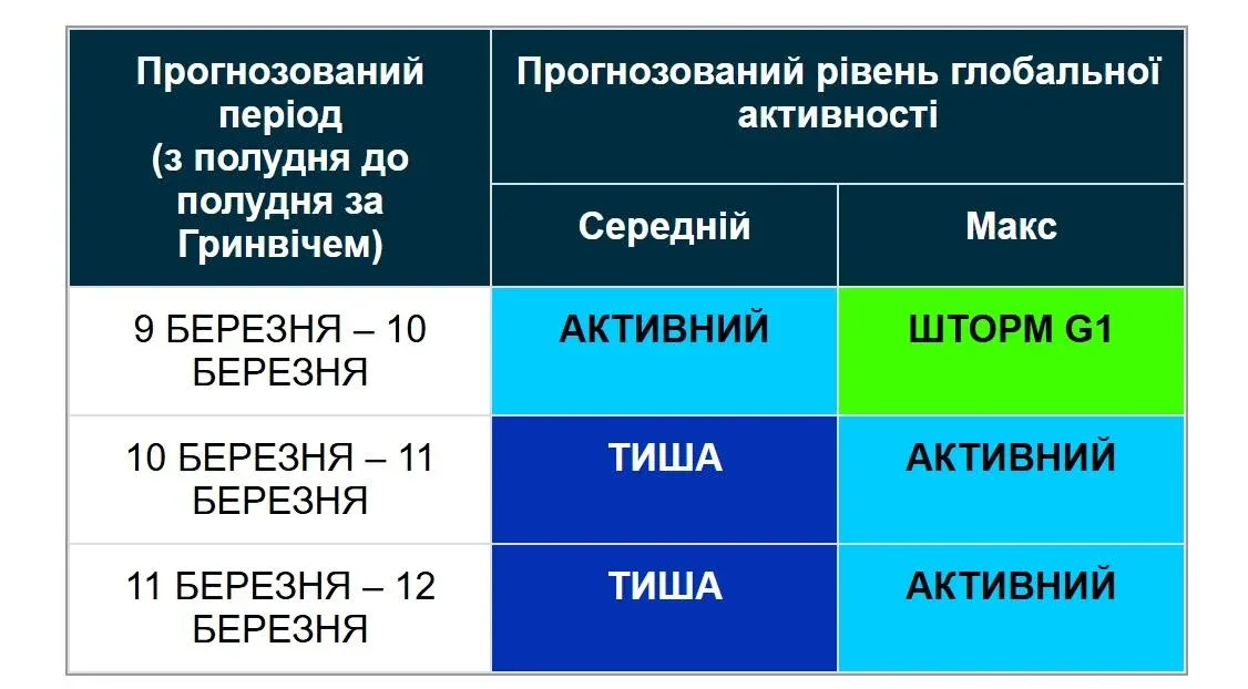 У вівторок, 10 березня, очікується слабка магнітна буря з К-індексом 3 (зелений рівень). Про це стало відомо з даних meteoagent та Британської геологічної служби.