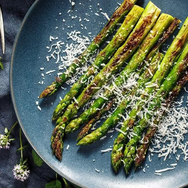 Сара Рієм пояснює, що незалежно від кольору (зелена, біла чи фіолетова), спаржа містить майже ідентичний набір корисних речовин. Вона багата на вітамін К, фолієву кислоту та клітковину.