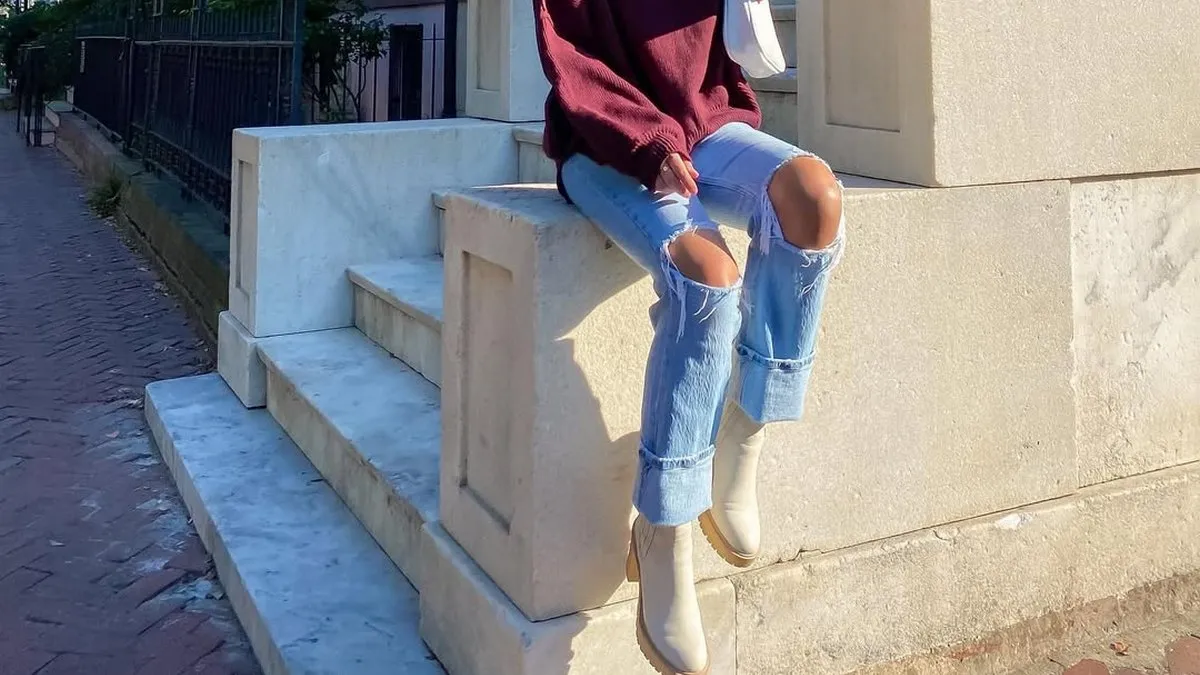 Суть тренду проста: широкі або прямі джинси з підкрученим низом на щиколотці. Манжети можуть бути вшитими або створеними вручну зі звичайних джинсів. Саме ця деталь робить базовий денім актуальним і свіжим.