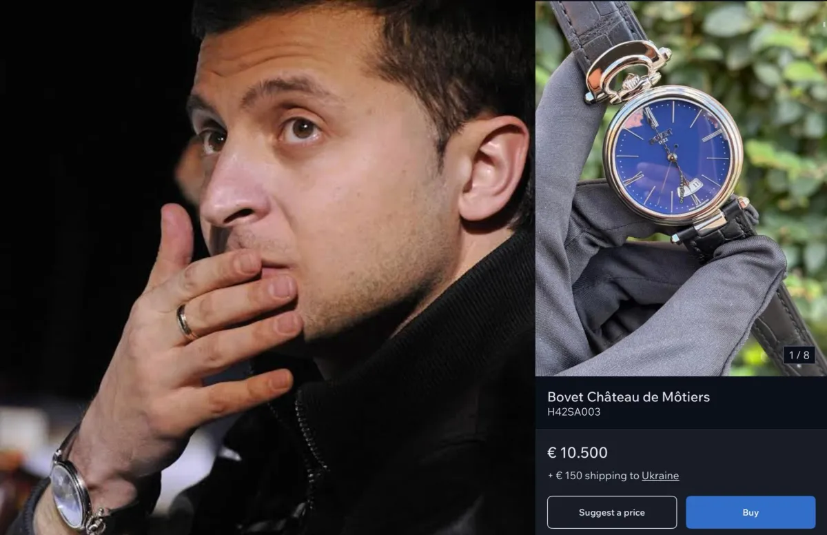 Також Зеленський з’являвся з годинником Bovet Château de Môtiers вартістю приблизно €10 500. Цей аксесуар вирізняється класичним дизайном і, за словами автора огляду, «віддає вайбом депутатських 90-х».