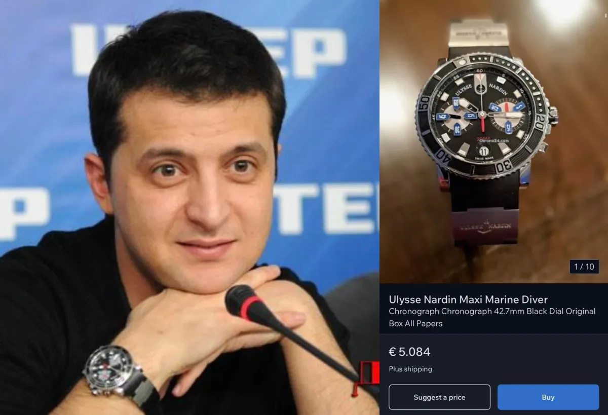 Одним із найулюбленіших годинників Зеленського був Ulysse Nardin Maxi Marine Diver — масивний дайверський хронограф, який сьогодні на ринку коштує близько €5 тис. Саме цю модель блогер називає своїм фаворитом у президентській колекції.