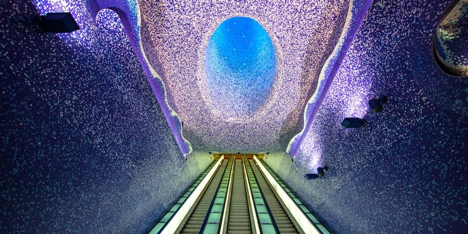 - Toledo (Неаполь, Італія). Одна з найвідоміших і найкрасивіших станцій метро у світі. Виконана у стилі сучасного мистецтва, вона вражає глибокими синіми мозаїками, світловими інсталяціями та ефектом занурення у морську безодню. Станцію неодноразово визнавали найкрасивішою у світі за версіями міжнародних архітектурних рейтингів.