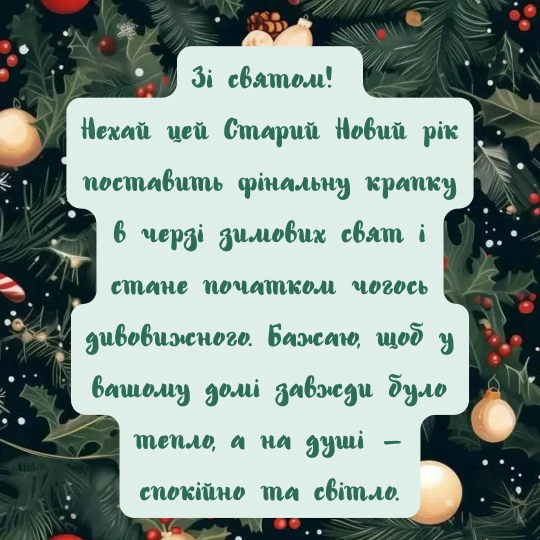 Зі Старим Новим роком! Хай цей вечір стане початком світлих змін, а навколо панує тільки добро, тепло й любов.
