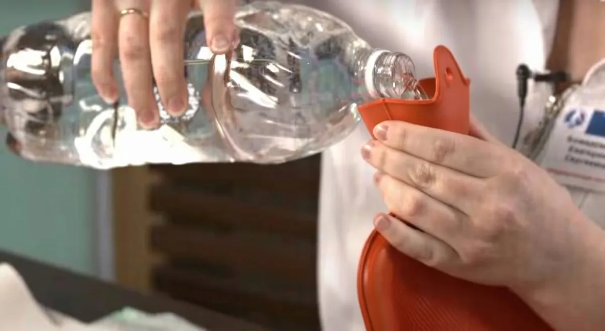 Наповнення гумової грілки водою. Фото: freepik