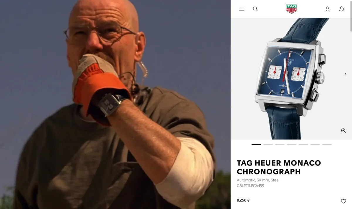 Проте пізніше Джессі подарував йому Tag Heuer Monaco — швейцарський годинник преміум-класу, що символізував трансформацію персонажа та його новий статус у кримінальному світі.