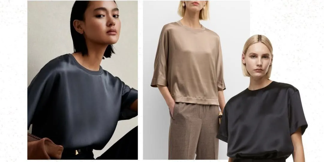 Другий варіант – сатинові футболки для тих, хто сумує за естетикою минулого. Андре зазначає, що базова бавовна вже трохи набридла, натомість сатин зараз на піку популярності. Такі футболки виглядають елегантно й сучасно за умови правильно підібраного крою.