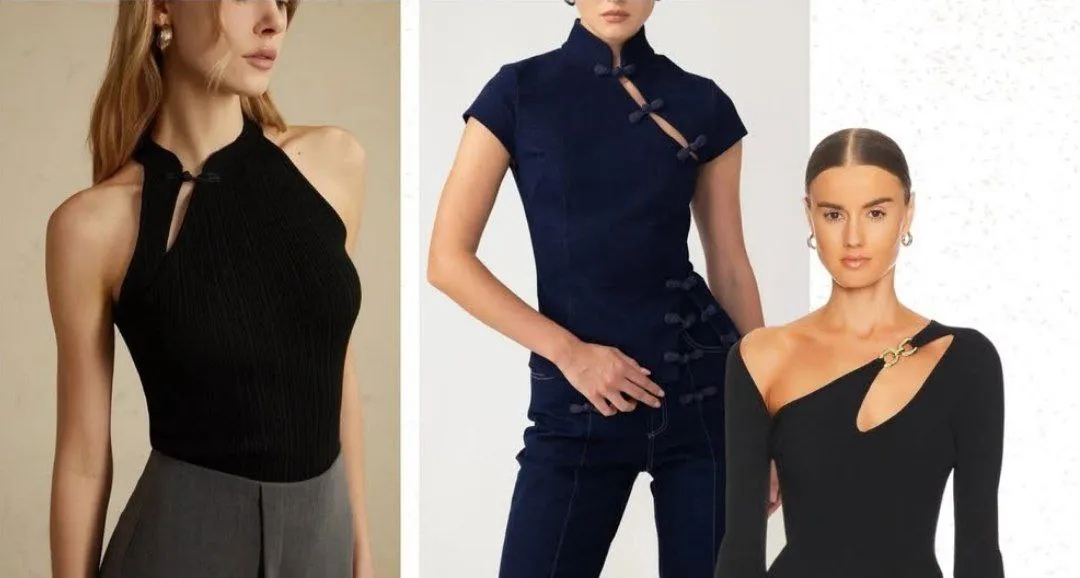 Четвертим трендом стали топи з розрізом біля шиї, які навіюють ностальгію за «нульовими». Вони однаково стильно виглядають як у застібнутому, так і в розстібнутому вигляді, дозволяючи змінювати настрій образу.