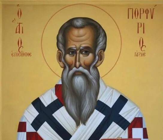 Православна церква 26 лютого вшановує пам'ять святого Порфирія — єпископа міста Газа, який жив наприкінці IV — на початку V століття. Народжений близько 347 року у заможній родині в Солуні, він змолоду обрав інший шлях: зрікся статків, прийняв чернецтво й оселився спершу в єгипетській пустелі, а пізніше — в Єрусалимі, де роками присвячував себе молитві й аскезі.