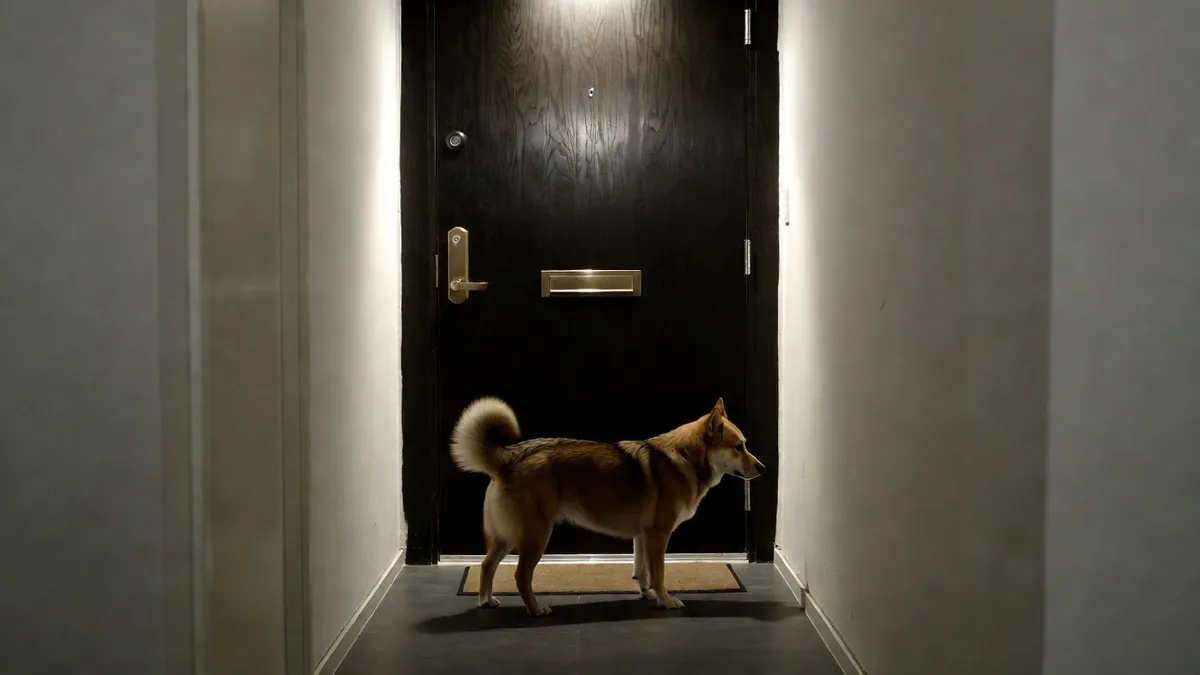 Собака чекає на господаря під дверима. Фото: BLIK.ua, згенероване засобами ШІ