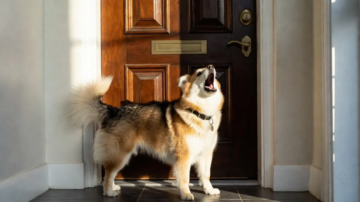 Собака гавкає біля дверей. Фото: BLIK.ua, згенероване засобами ШІ