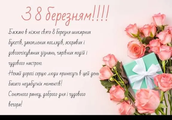Ідеально підійдуть картинки з ніжними гілочками мімози, весняними пейзажами або мінімалістичними букетами. Побажайте колегам професійного зростання, натхнення, легкості в роботі та гармонії в родині, відправивши гарну листівку в загальний робочий чат.