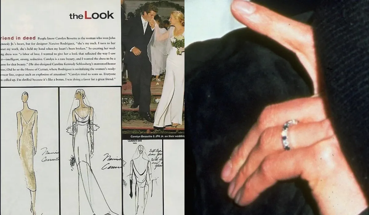 Нариси майбутньої сукні Керолін Бессетт-Кеннеді та каблучка. Колаж BLIK.ua