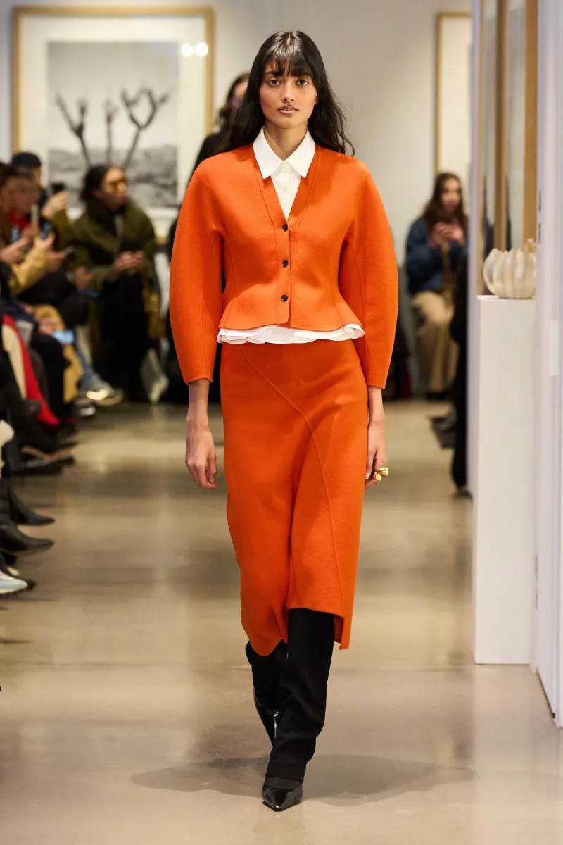 Третій тренд – яскравий жовтий, який перетікає у соковитий мандариновий. Це справжній символ сонця та енергії. Андре Тан радить вводити його в гардероб через аксесуари або окремі акцентні речі.