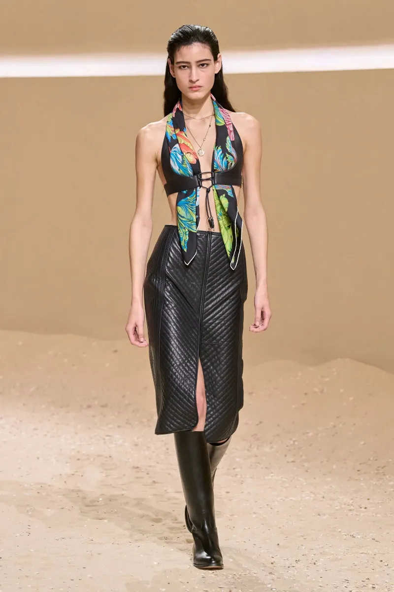 Весняний сезон 2026 року приніс несподіване переосмислення звичного аксесуара. Шовкова хустка, яку роками використовували виключно як доповнення до образу, цьогоріч отримала статус самостійного елемента гардероба. Провідні модні будинки, такі як Hermès, Celine, Toteme та Dior, продемонстрували на своїх показах одразу кілька принципово нових підходів до використання шовкового полотна. Про це повідомляє Vogue.